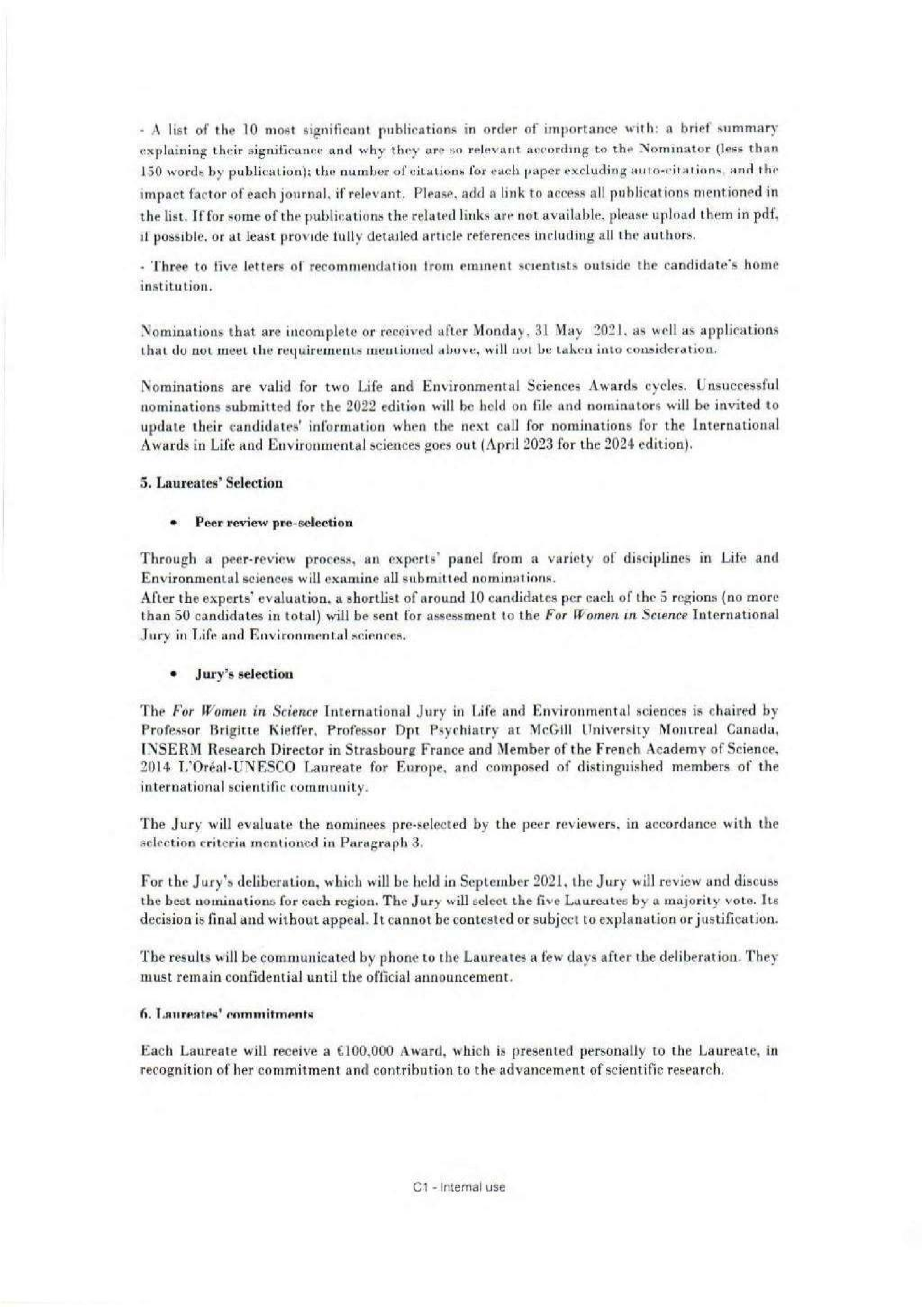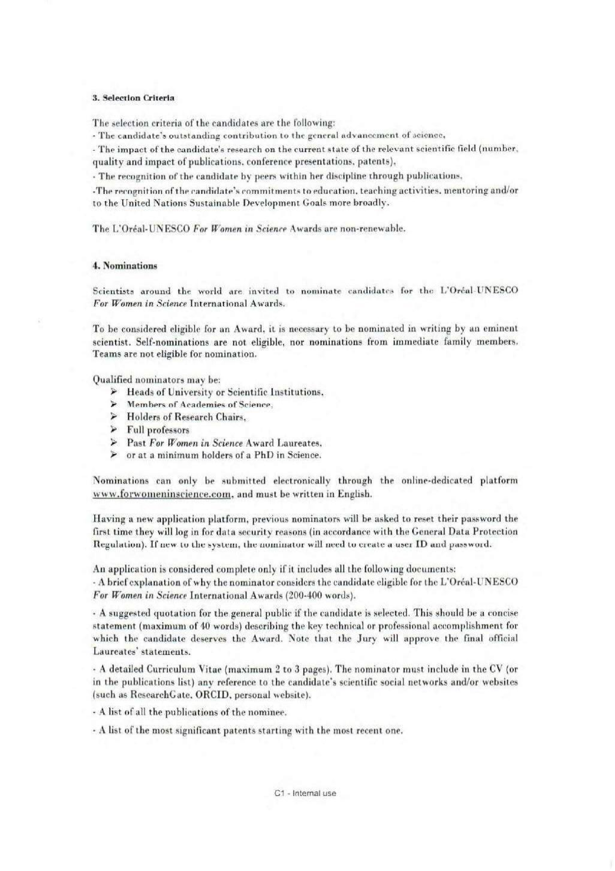 Конкурс на соискание Международной премии в рамках программы ЮНЕСКО-Л'ОРЕАЛЬ "Для женщин в науке"-2022